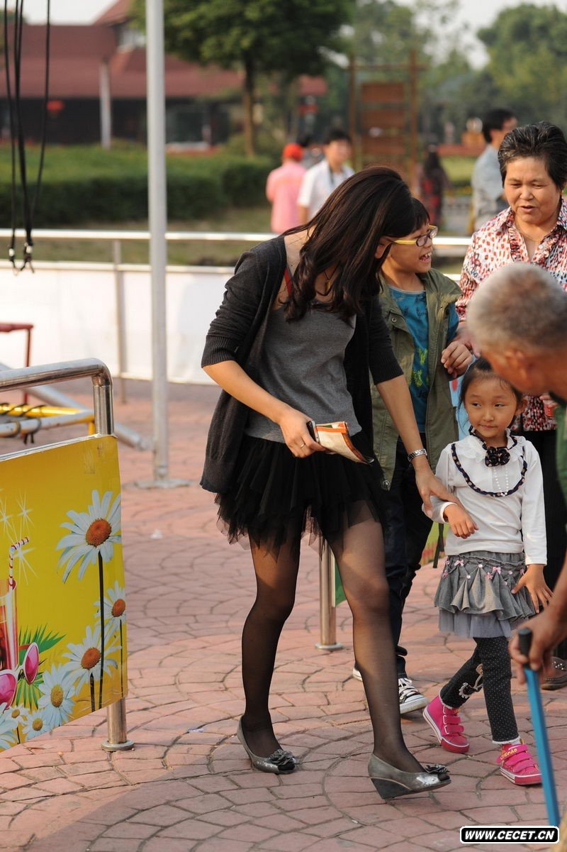 超级游乐场街拍黑丝美少妇