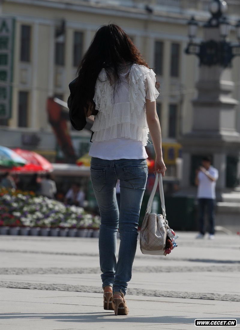 杭州银泰街拍牛仔裤美女