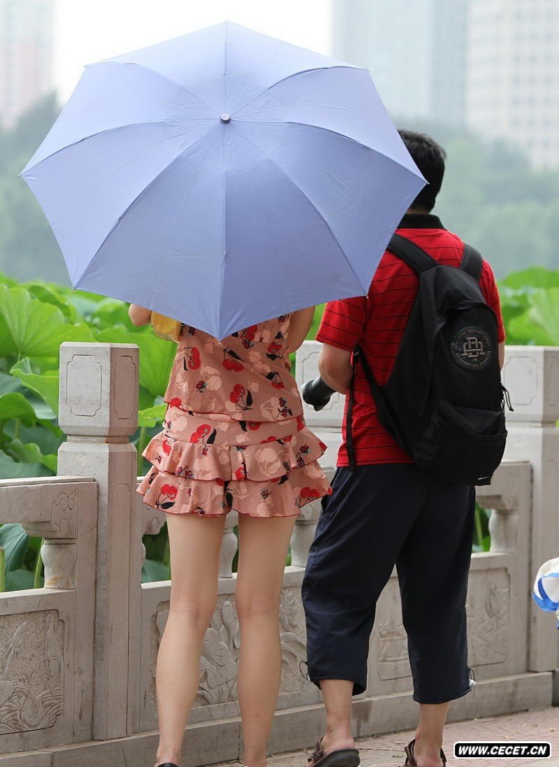 菏泽公园看荷花的连衣裙美女