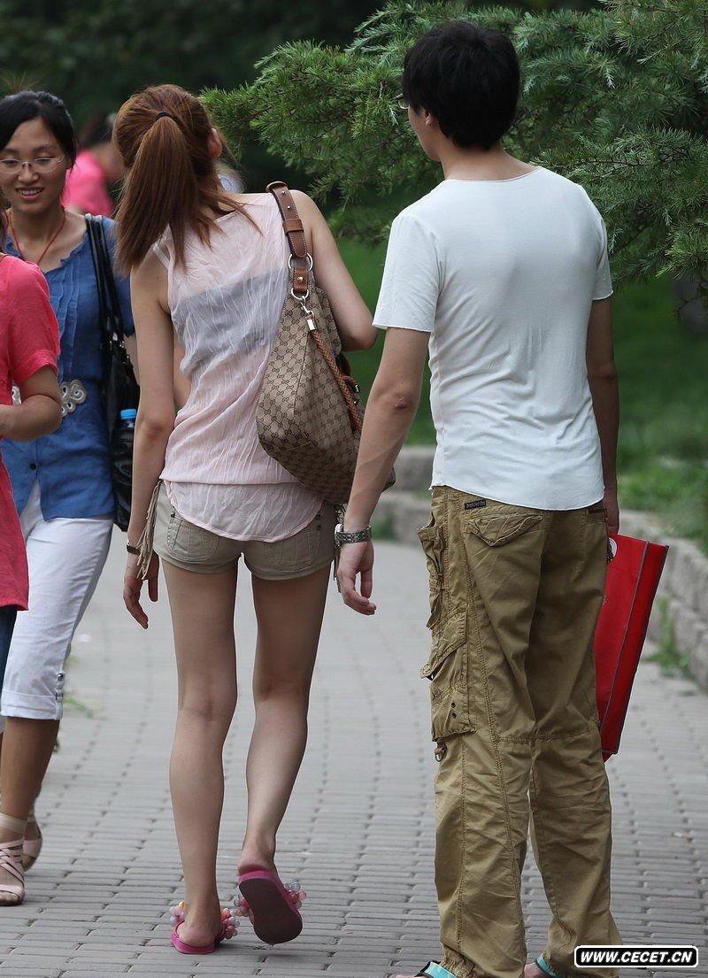 街拍透纱上衣热裤白嫩