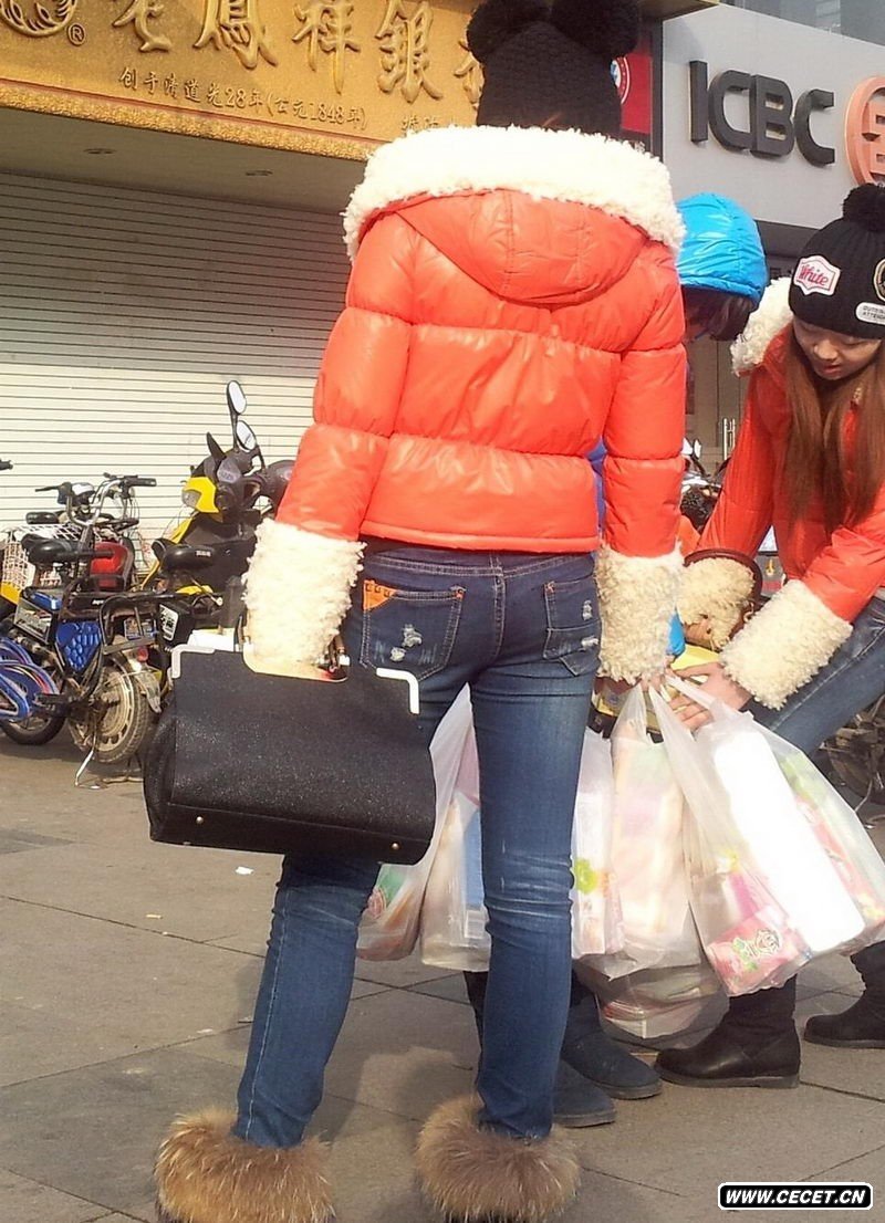 街拍的牛仔紧身裤美女