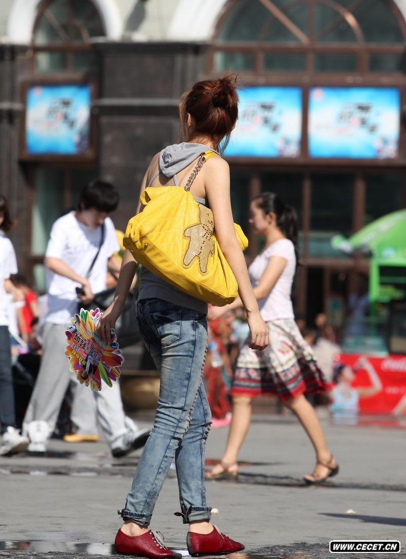 天津站后广场的牛仔裤妹子