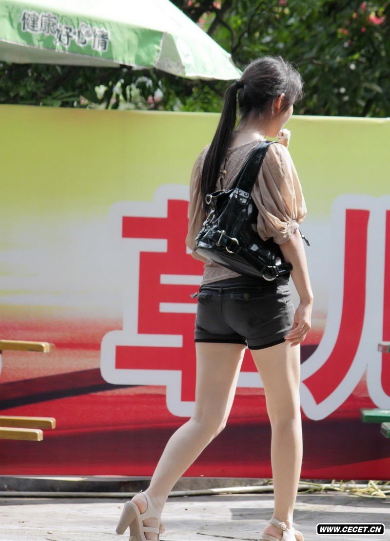 秀彩公园紧身短裤丝袜美女