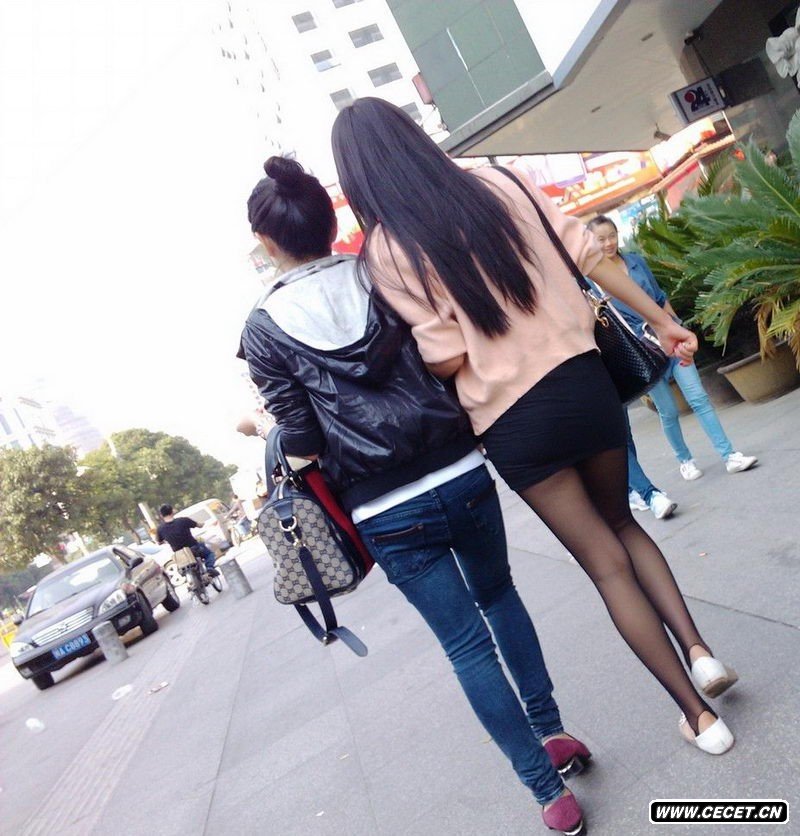 街拍黑丝和牛仔裤美女