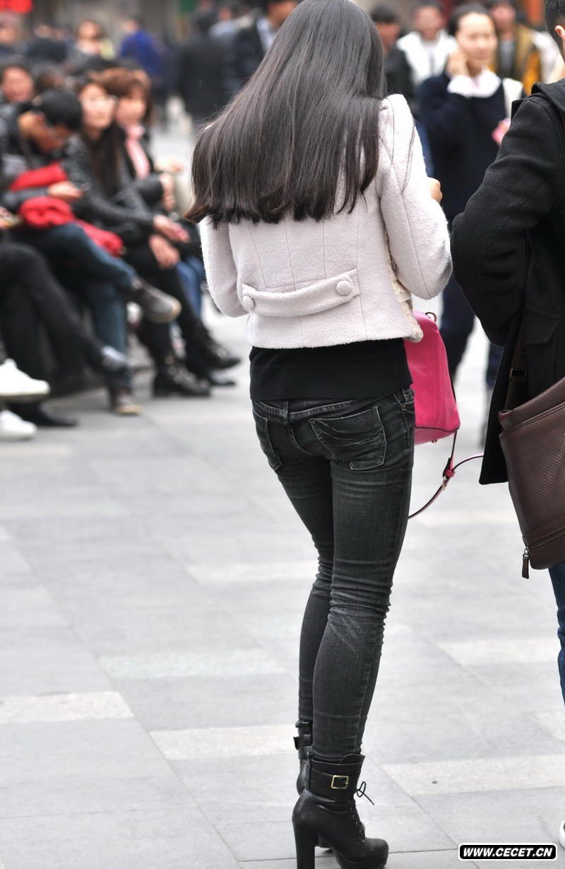 小商品街跟拍的黑牛仔裤美女