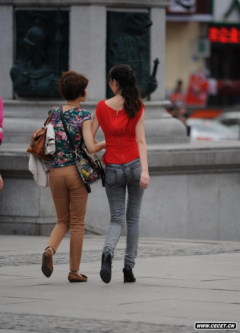 越秀区街拍紧身牛仔裤美女