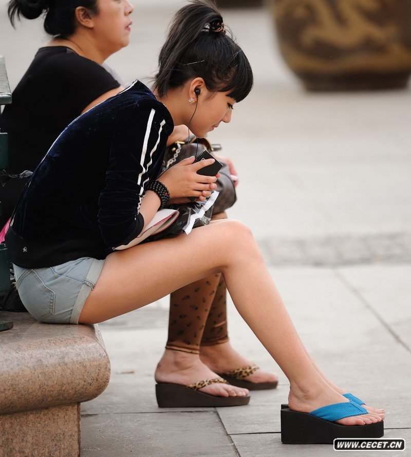 街拍路边休息的长腿短裤美眉