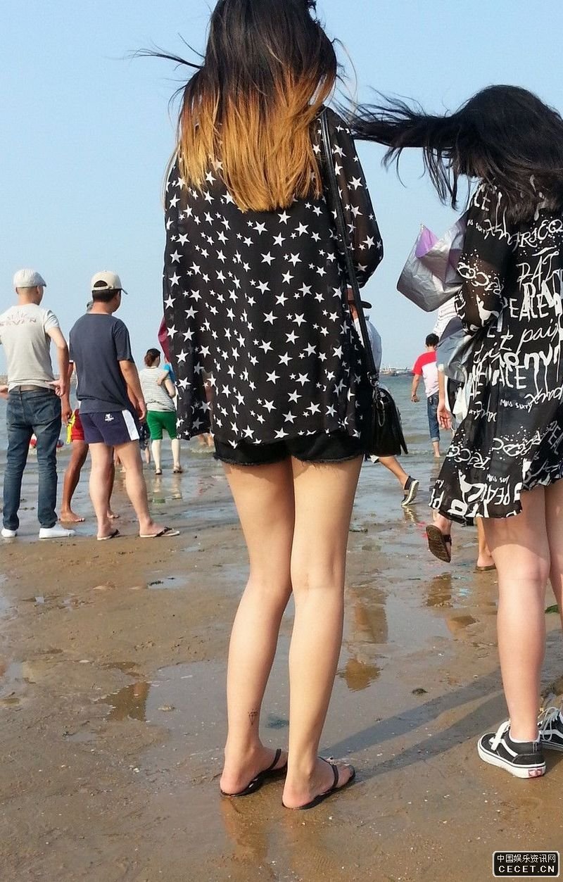 海边抓拍的短裤裸腿美女