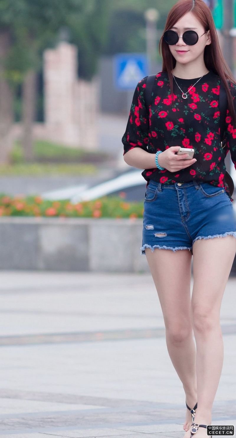 大学东路街拍短裤美女