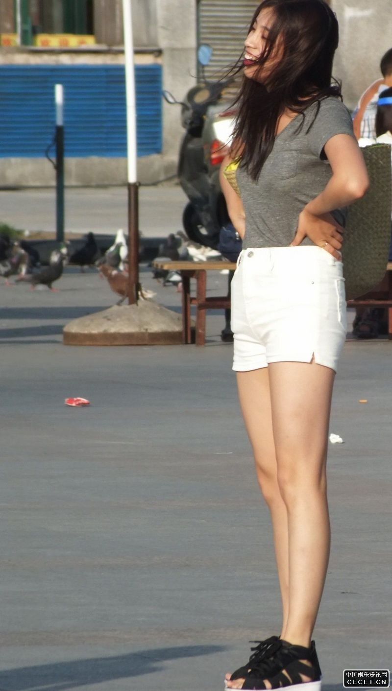 东新市场街拍的白色热裤妹妹