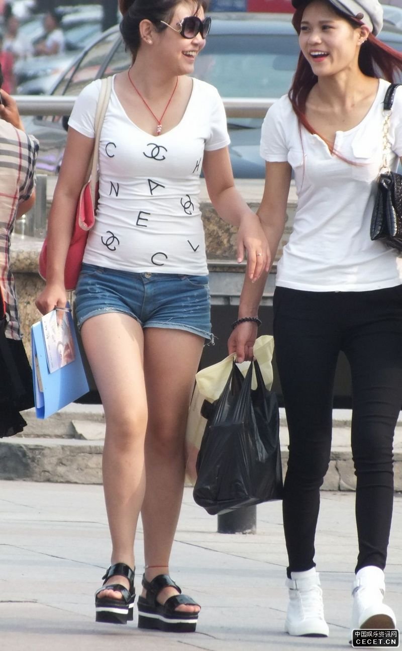 街拍的牛仔紧身热裤裸腿美女