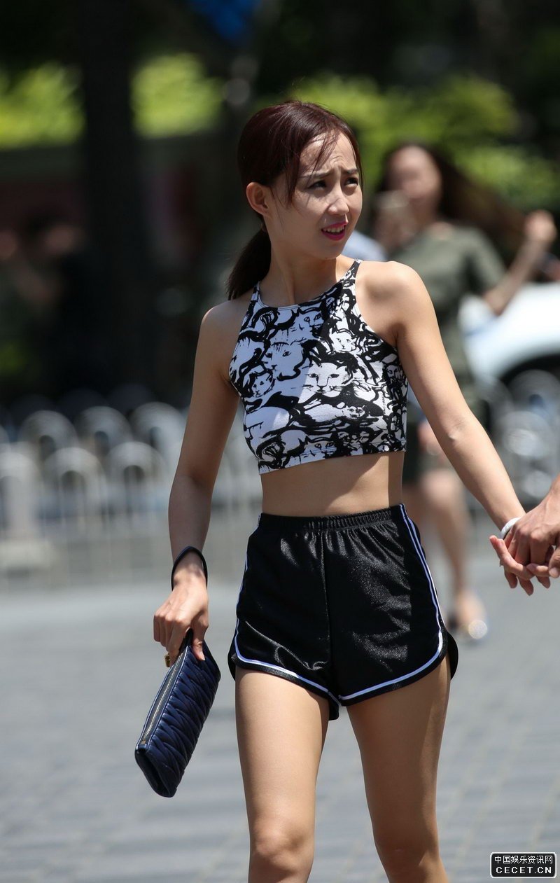 街拍的露脐清凉装短裤美女