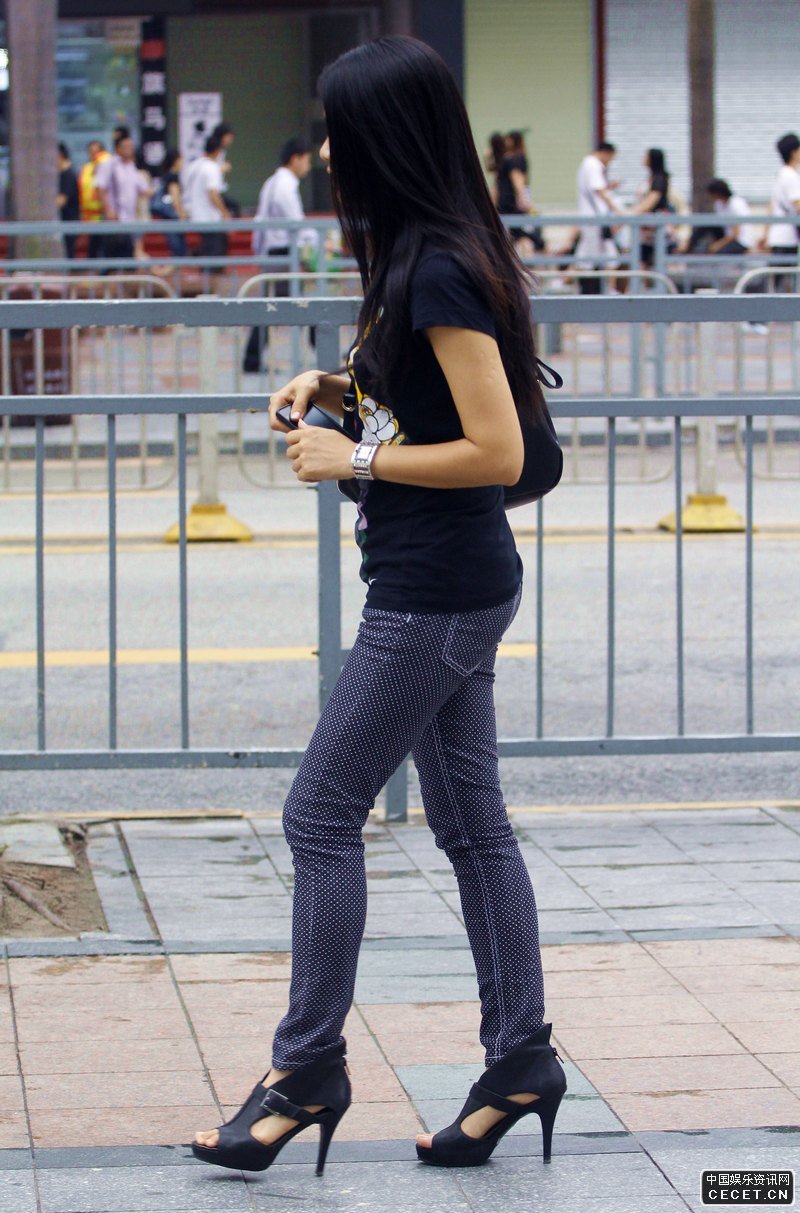 紧身牛仔裤细高跟身姿