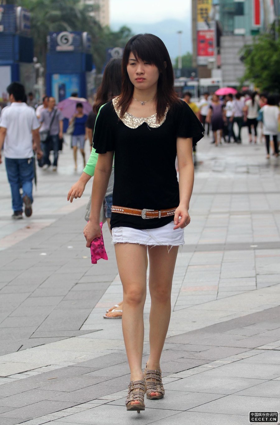黑色上衣白色短裤裙粉嫩美腿妹子