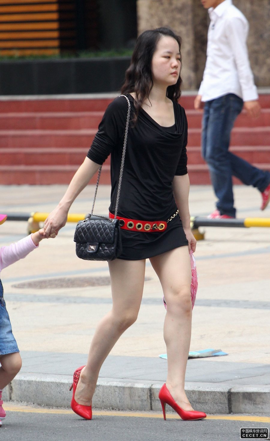 玉腿辣妈肌肤白嫩红色高跟引人注目