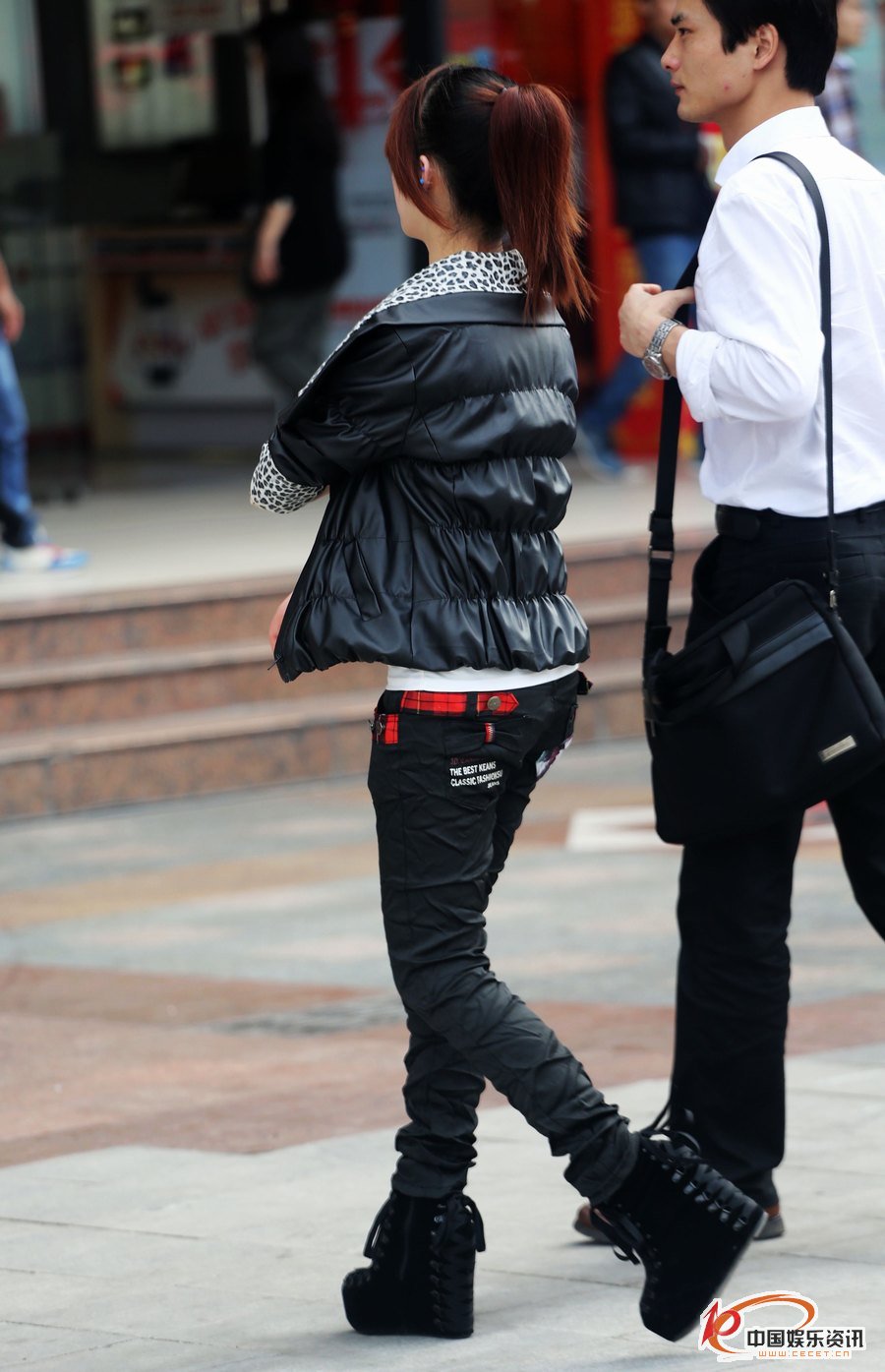 中新街抓拍的紧身裤白