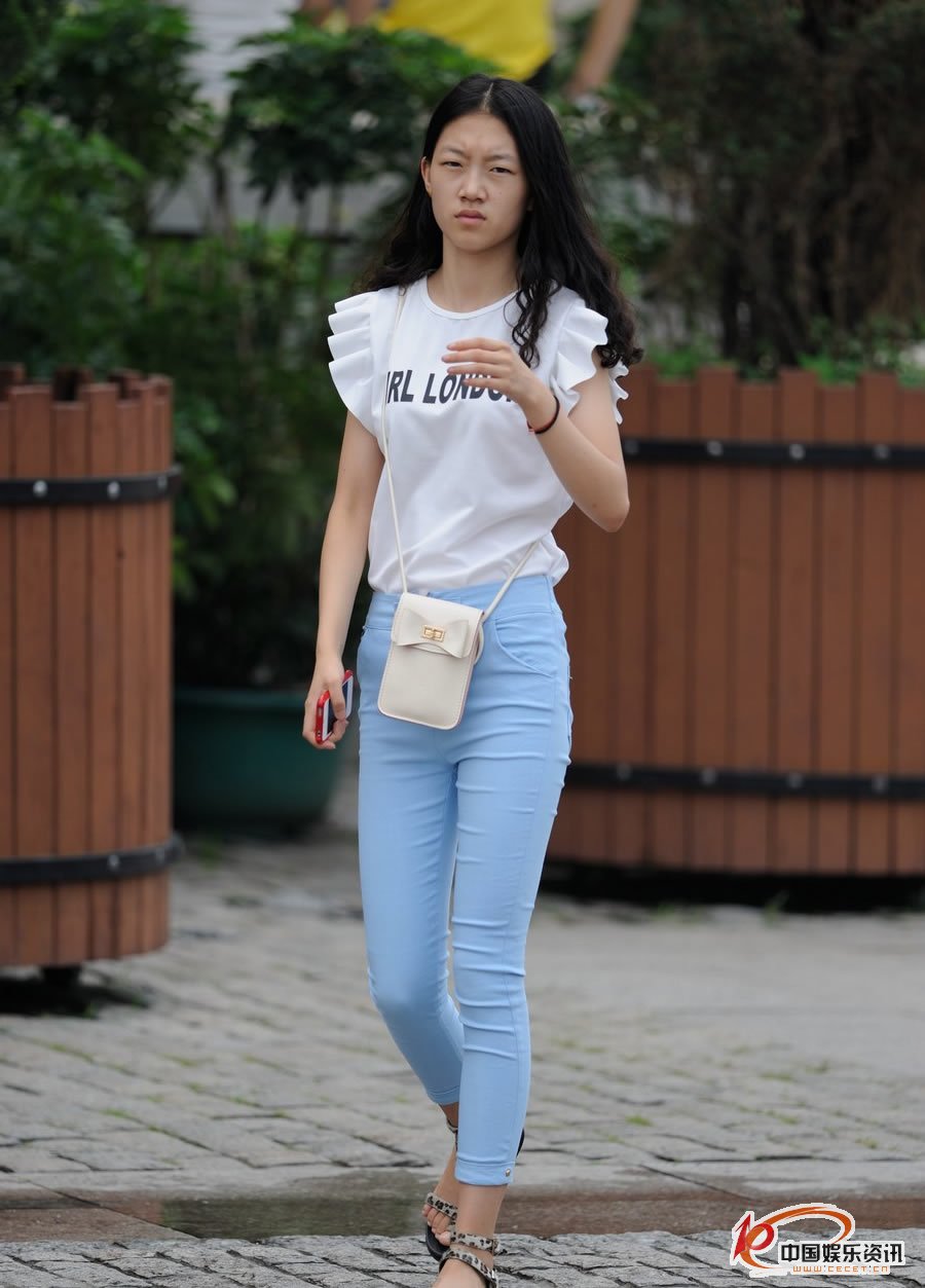 杭州公园抓拍的牛仔短