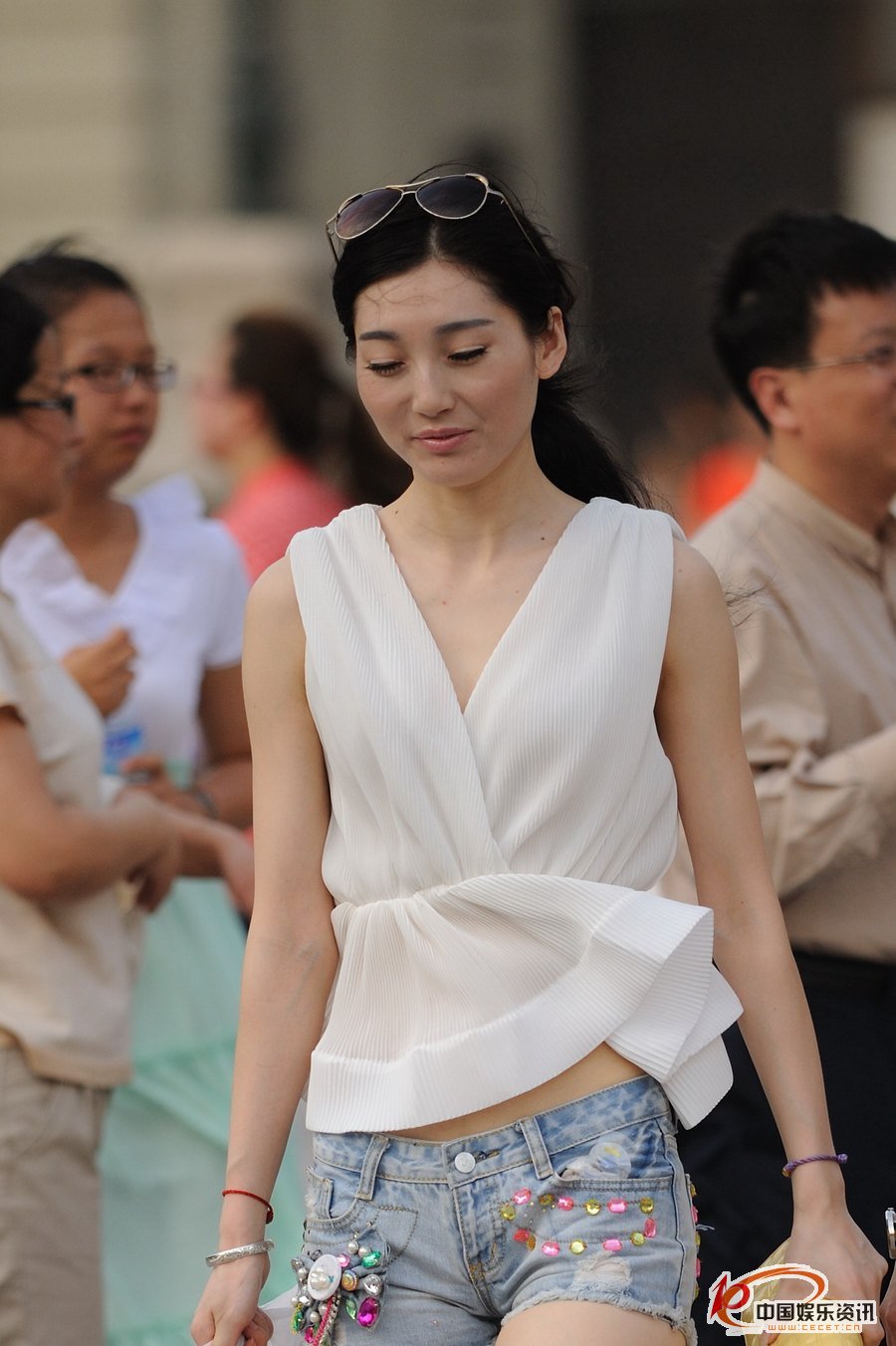 景区抓拍的牛仔裤美女