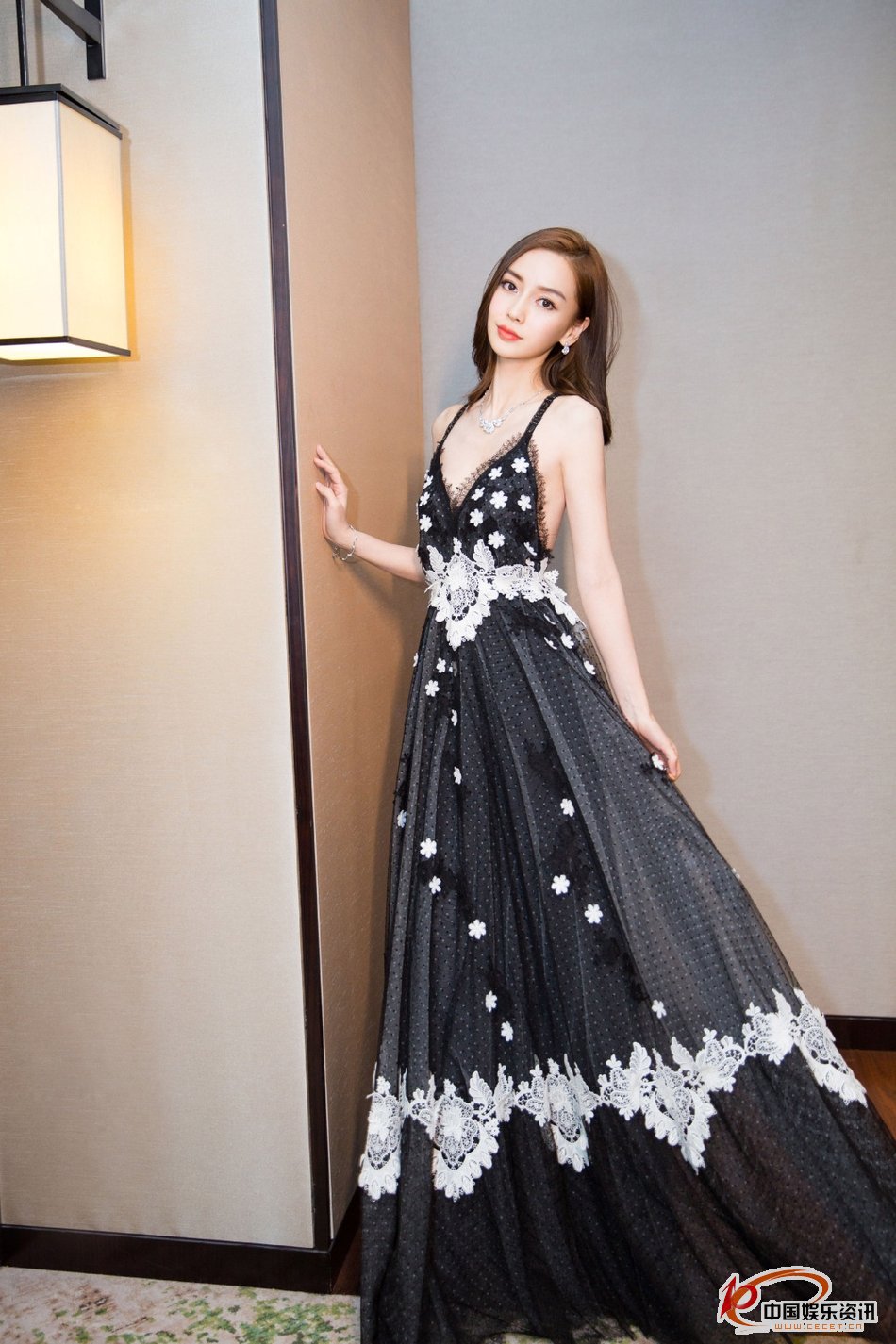 Angelababy蕾丝裙美照 纤纤玉背性感优雅