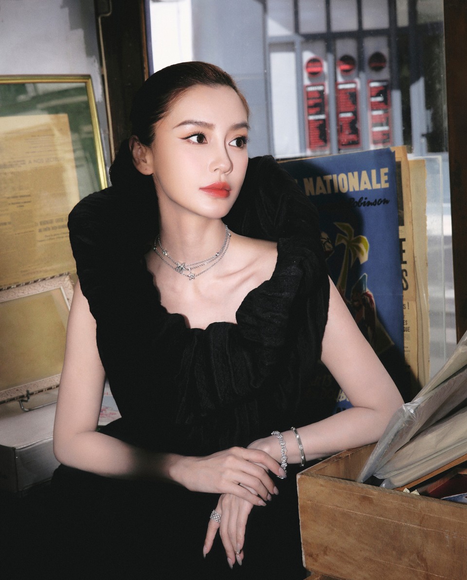 Angelababy锋芒与星河的交界 温润珠链轻抚颈间