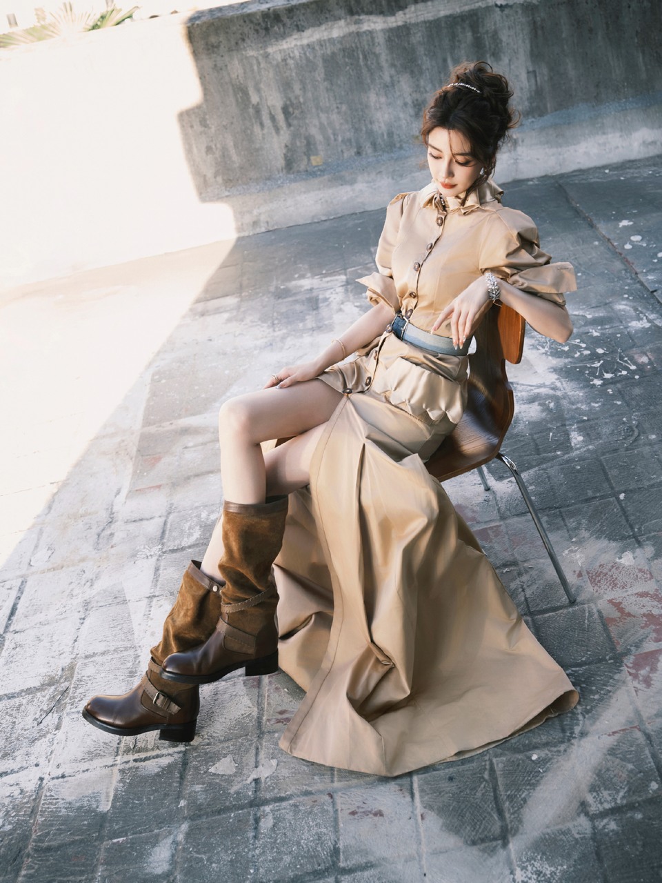Angelababy暖金衣纹裹着沪上微风 优雅随步履漫延