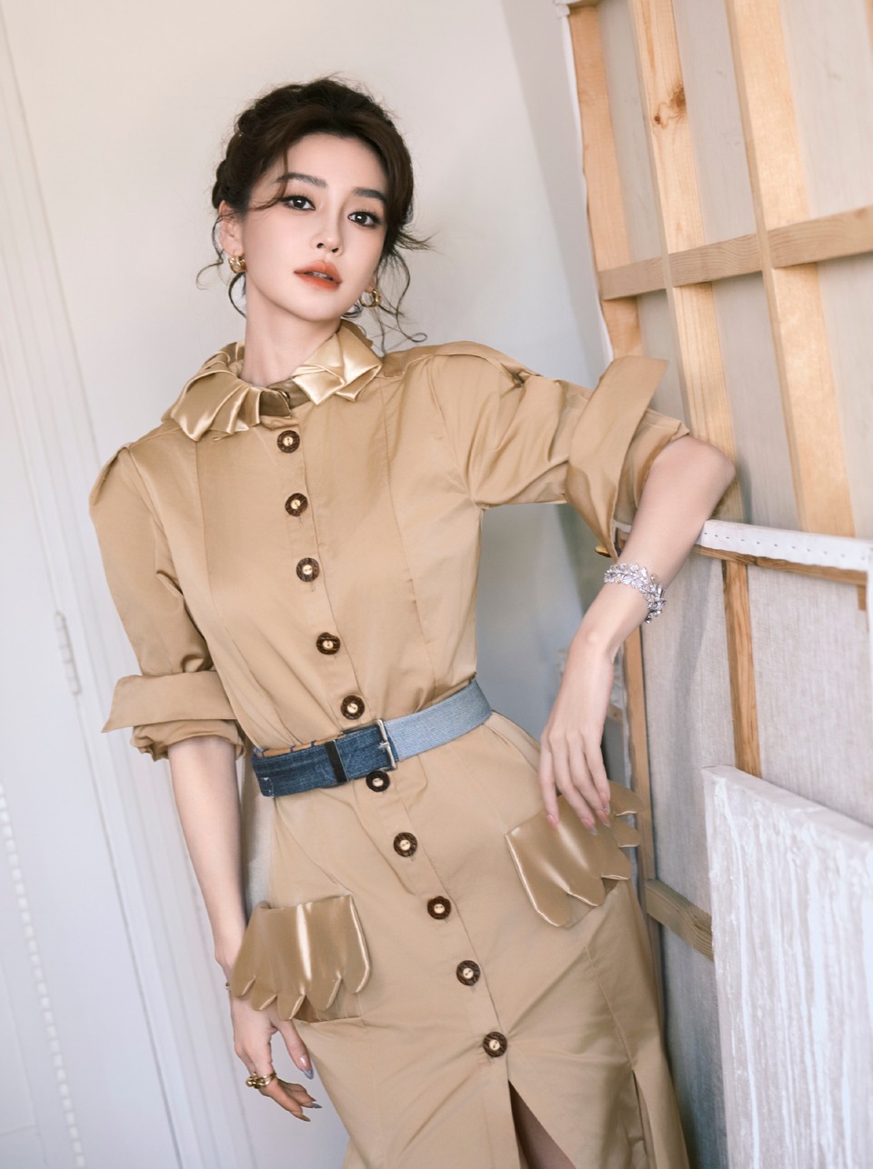 Angelababy暖金衣纹裹着沪上微风 优雅随步履漫延