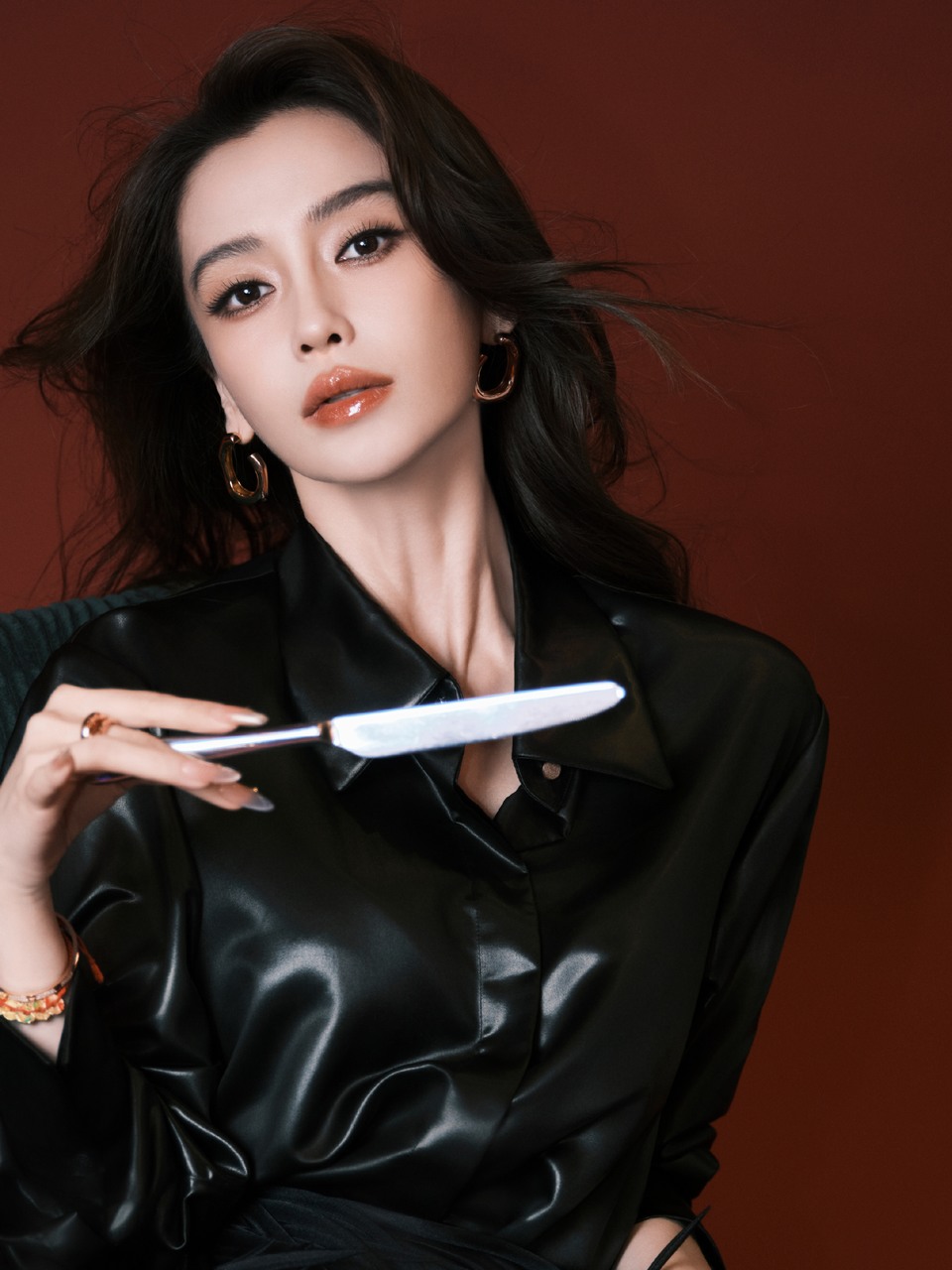 Angelababy光缕缠上皮质衣摆 浪漫因子在明暗褶皱里悄然生长