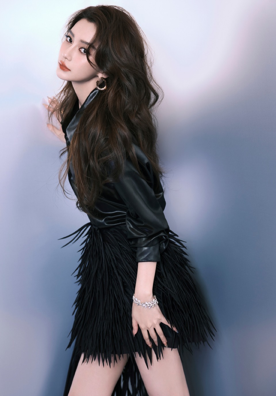 Angelababy光缕缠上皮质衣摆 浪漫因子在明暗褶皱里悄然生长