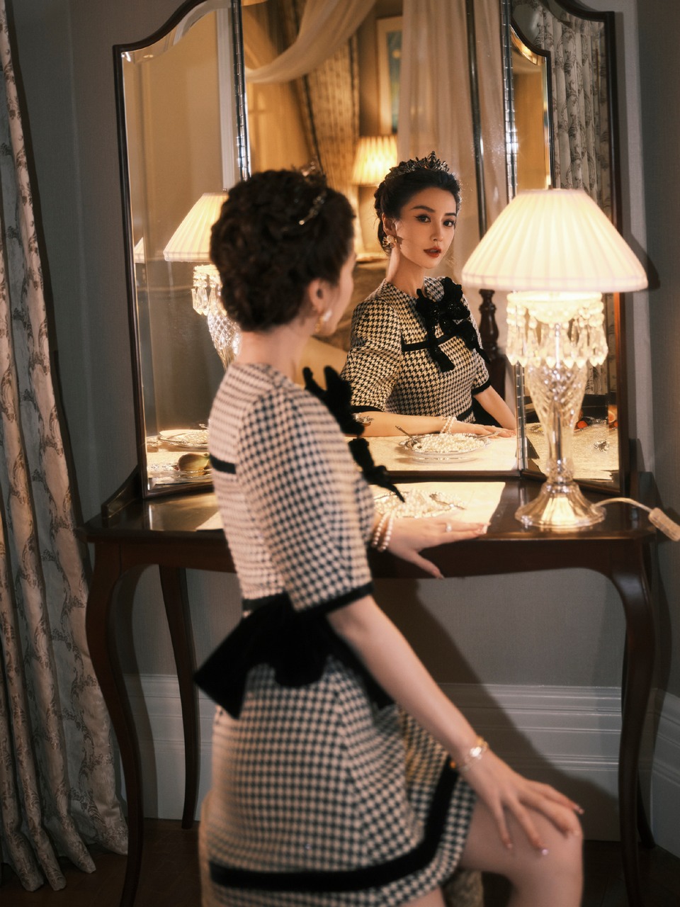 Angelababy千鸟格织就复古序章 是今夜与时光的静谧之约
