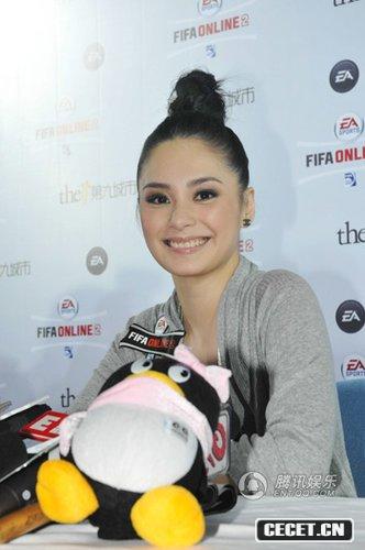 阿娇扎道姑头玩游戏 见QQ仔喜笑颜开