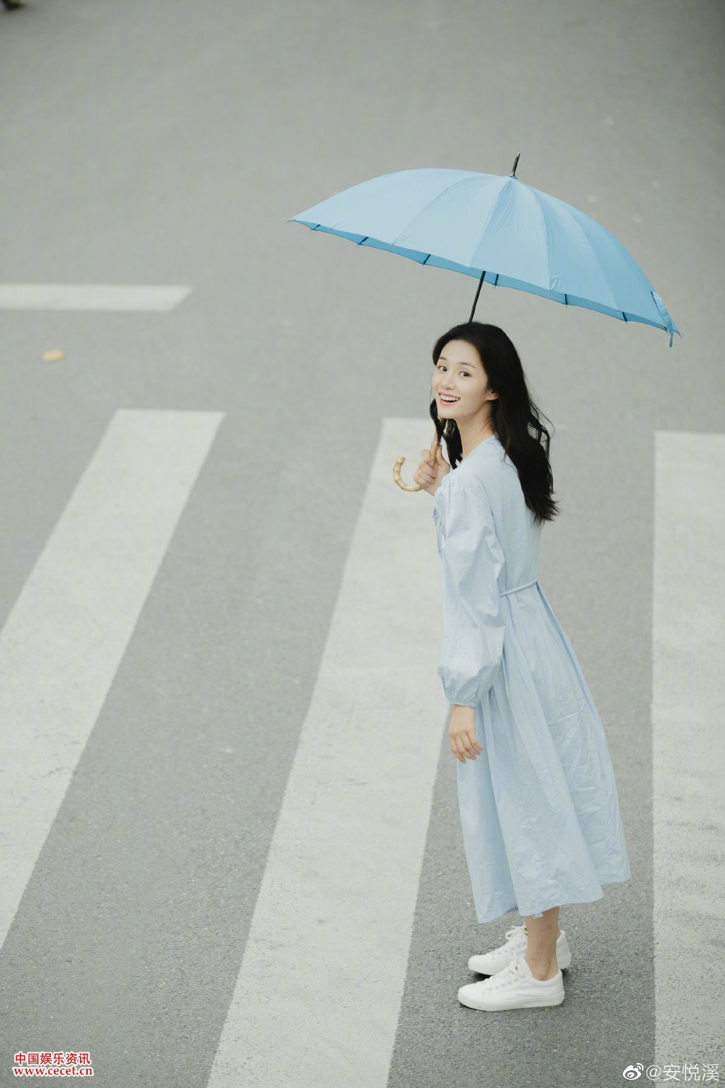 安悦溪连衣裙清新美照 街角演绎小公主风