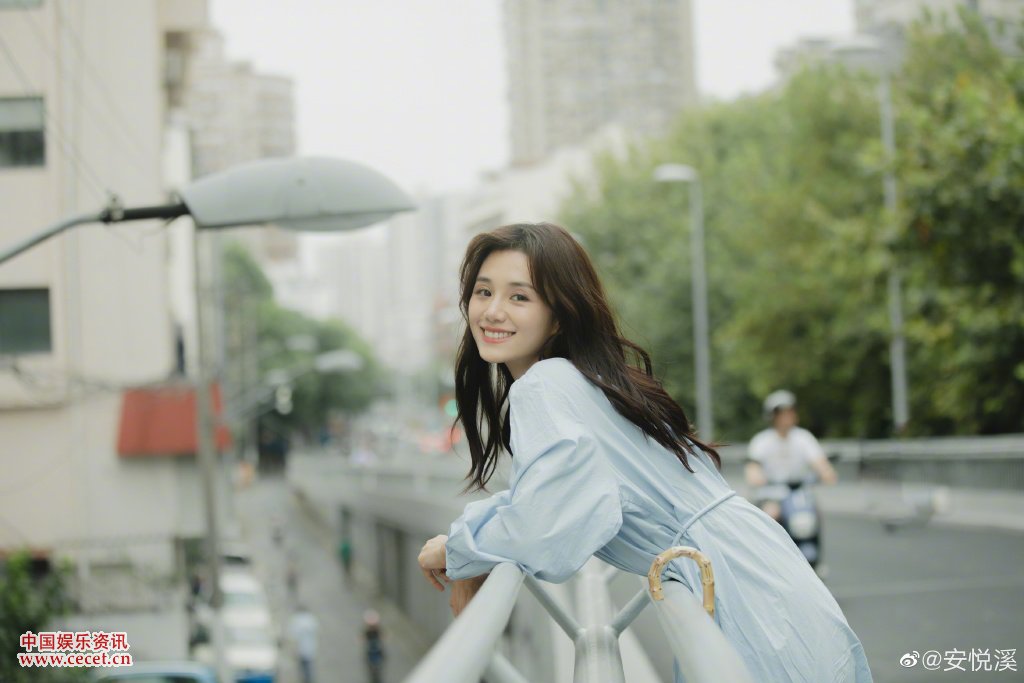安悦溪连衣裙清新美照 街角演绎小公主风