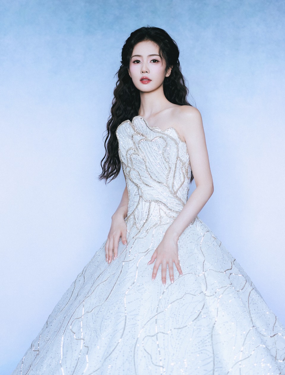 白鹿裙摆生花层层绽放 一动一静间皆是温柔典韵