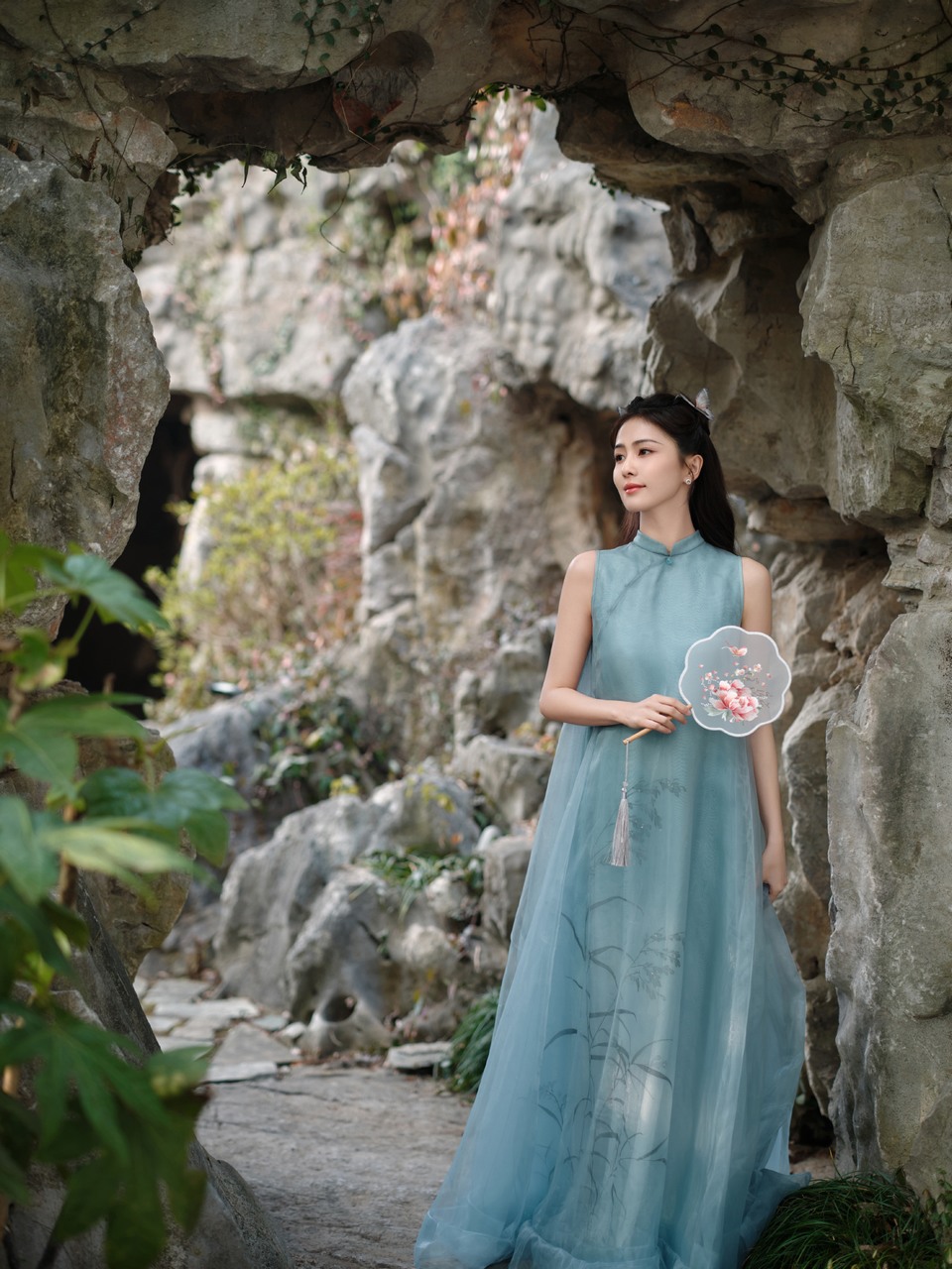 白鹿撑一把油纸伞漫步园林 笑颜和柔如清风明月
