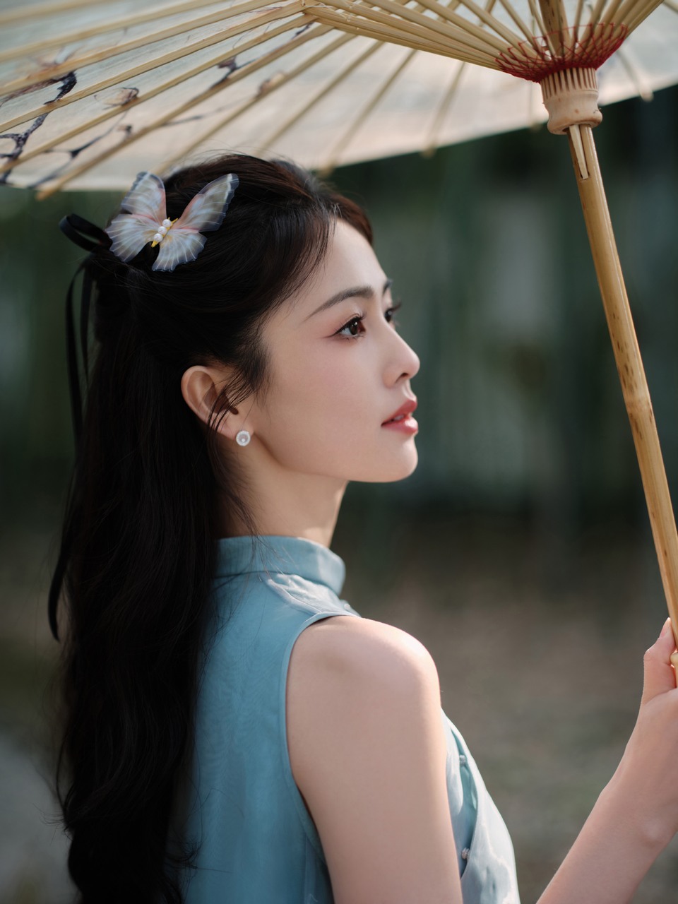 白鹿撑一把油纸伞漫步园林 笑颜和柔如清风明月
