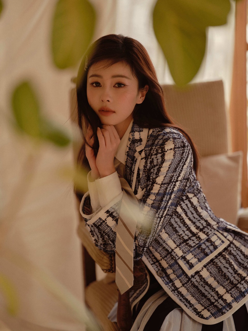 陈都灵素瑕吻裙裁瓷色入摇曳