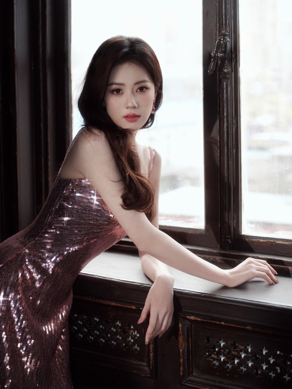 万茜静谧倚于角落