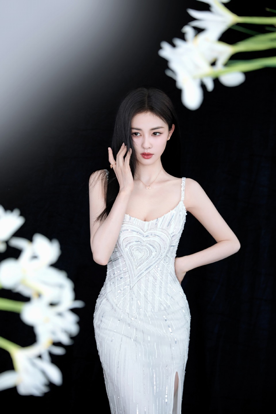 陈卓璇缎带蝴蝶结搭配银闪礼裙