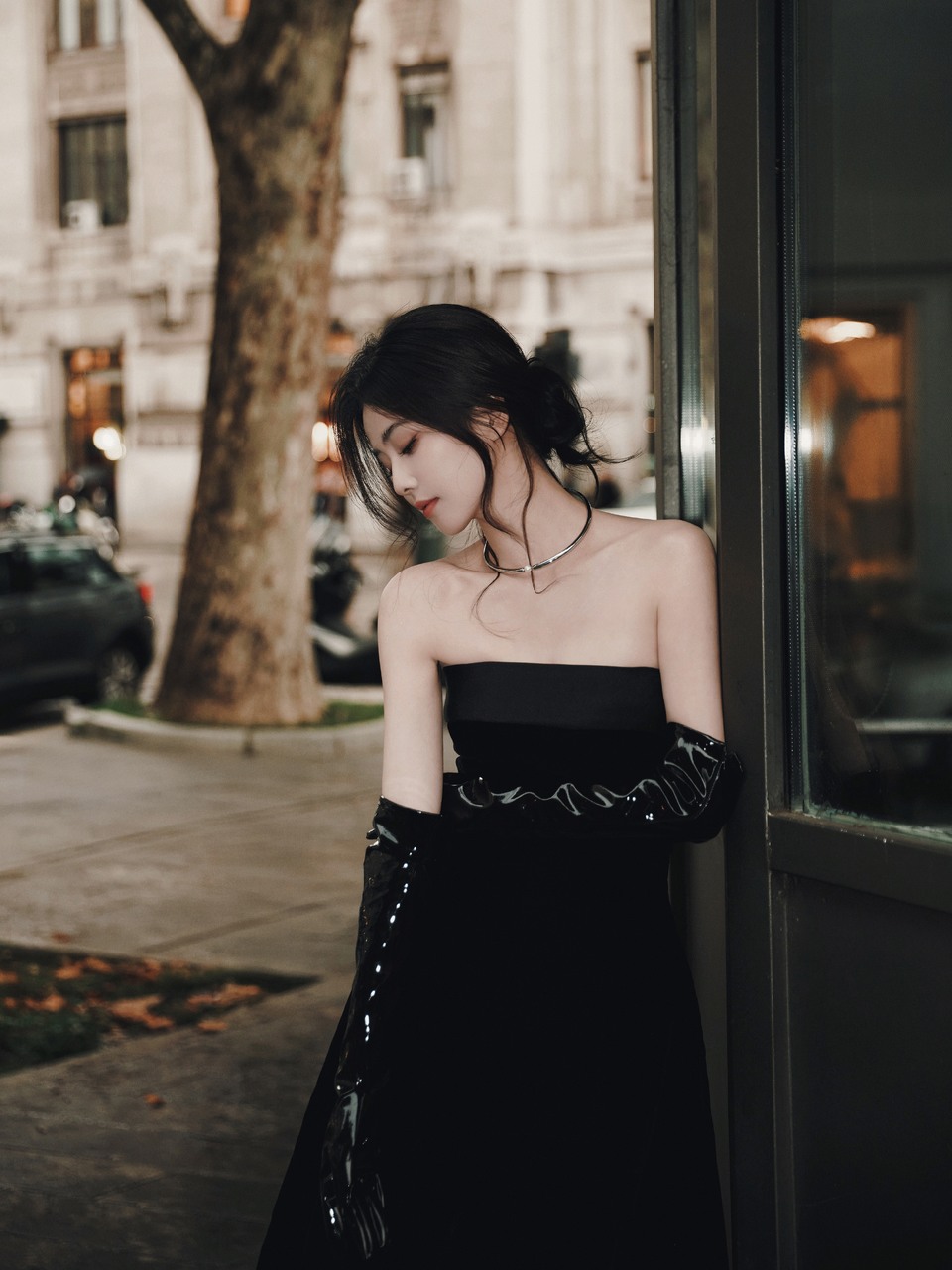 陈卓璇缎带蝴蝶结搭配银闪礼裙