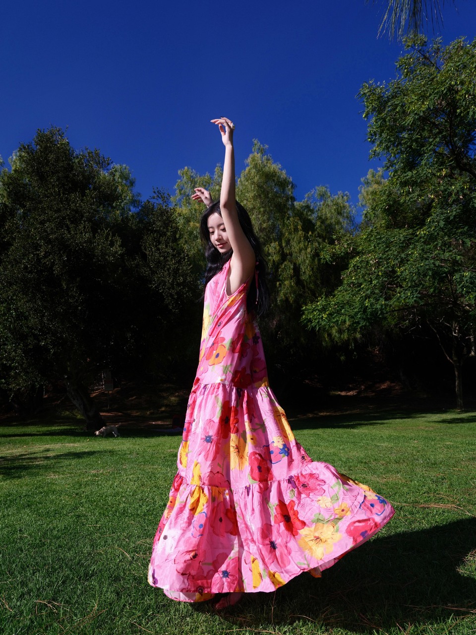 公园抓拍的花色衣裙黑