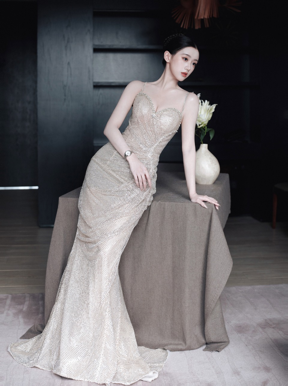 宋茜裁一袭幻谲粉缎