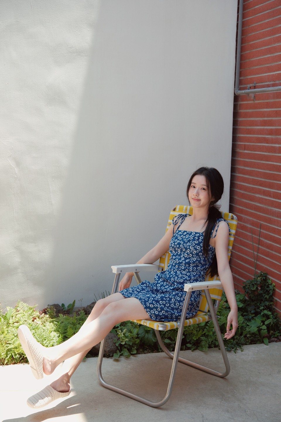 无袖上衣蓝裙美眉美肌