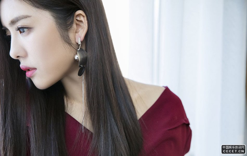 蔡文静酒红色套装亮相 腰细腿长御姐范儿十足