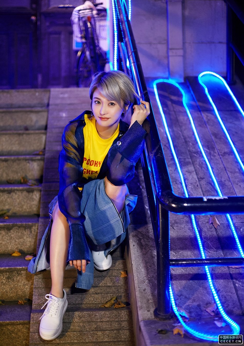 陈冰华灯初上夜景街拍 眼神魅惑表现力十足