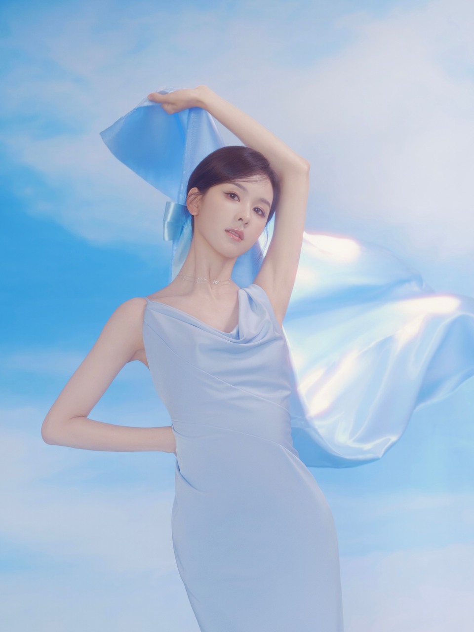 陈都灵和软软白云相拥 蓝色缎带编织柔软梦境