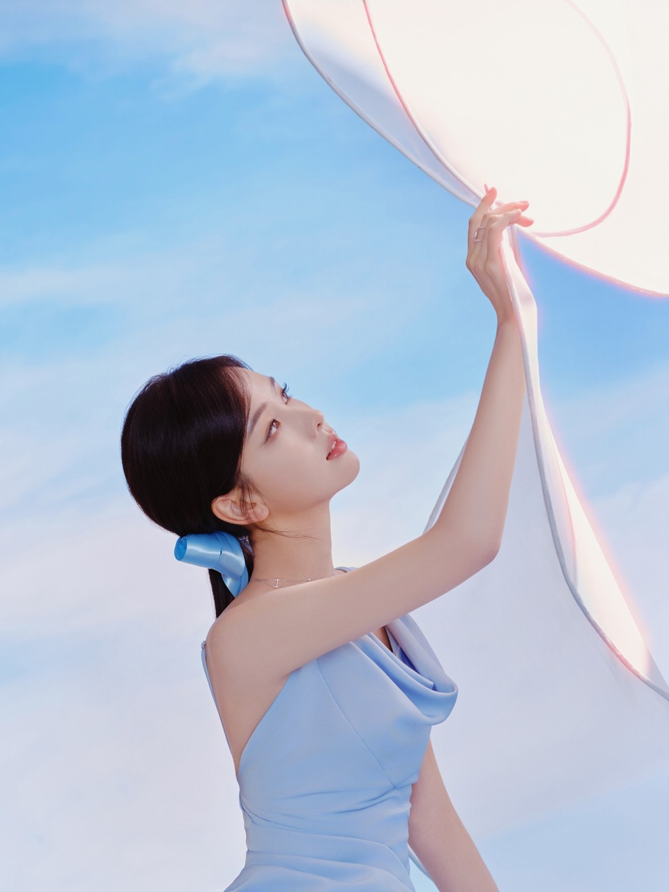 陈都灵和软软白云相拥 蓝色缎带编织柔软梦境