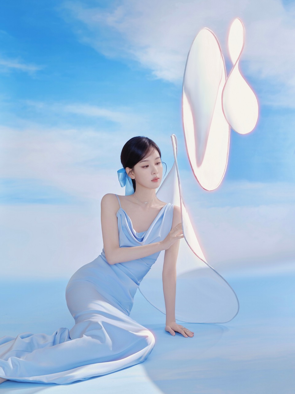 陈都灵和软软白云相拥 蓝色缎带编织柔软梦境