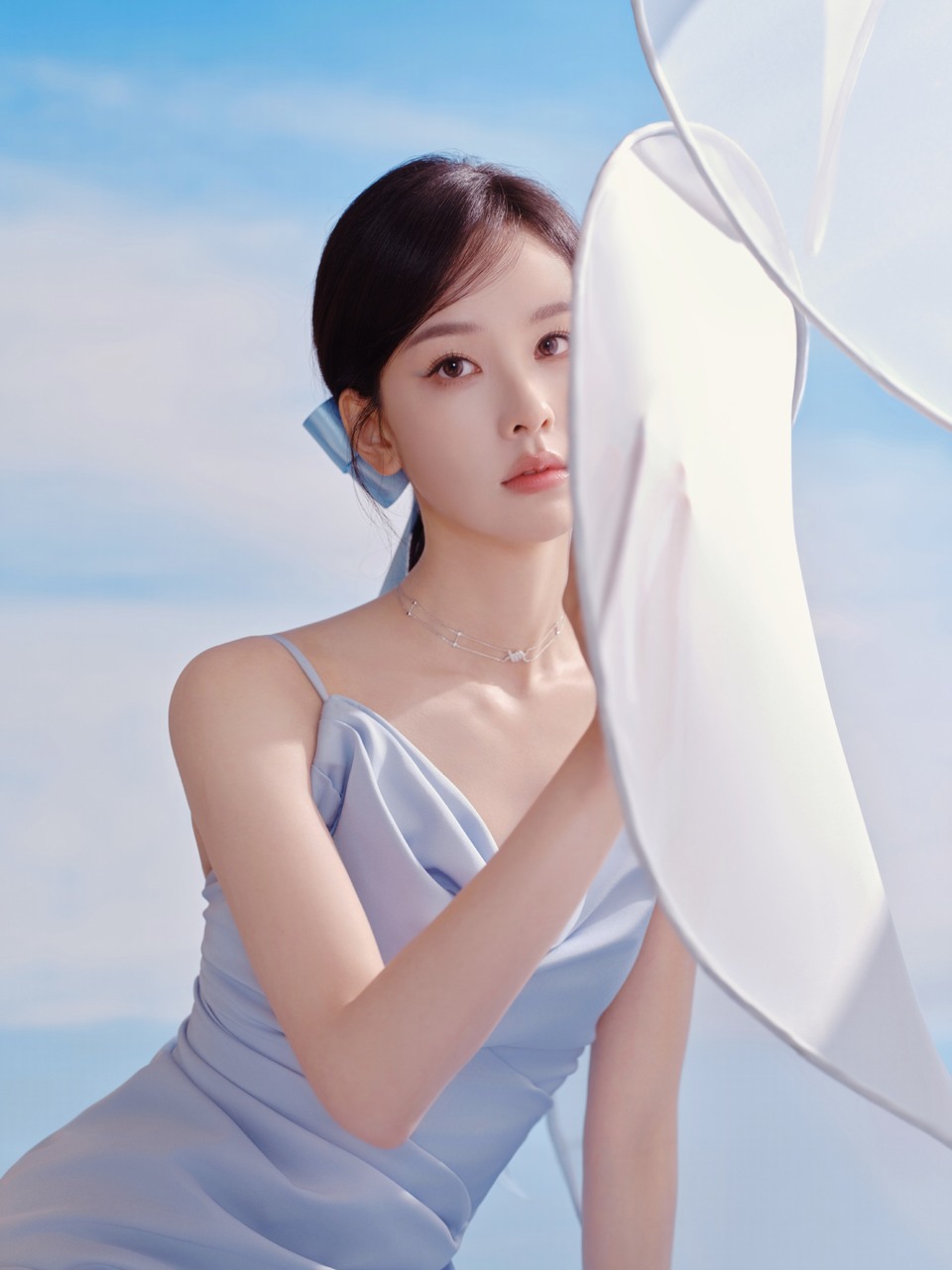 陈都灵和软软白云相拥 蓝色缎带编织柔软梦境