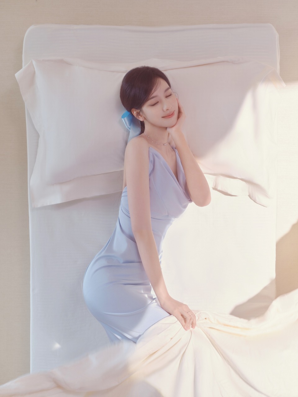 陈都灵和软软白云相拥 蓝色缎带编织柔软梦境