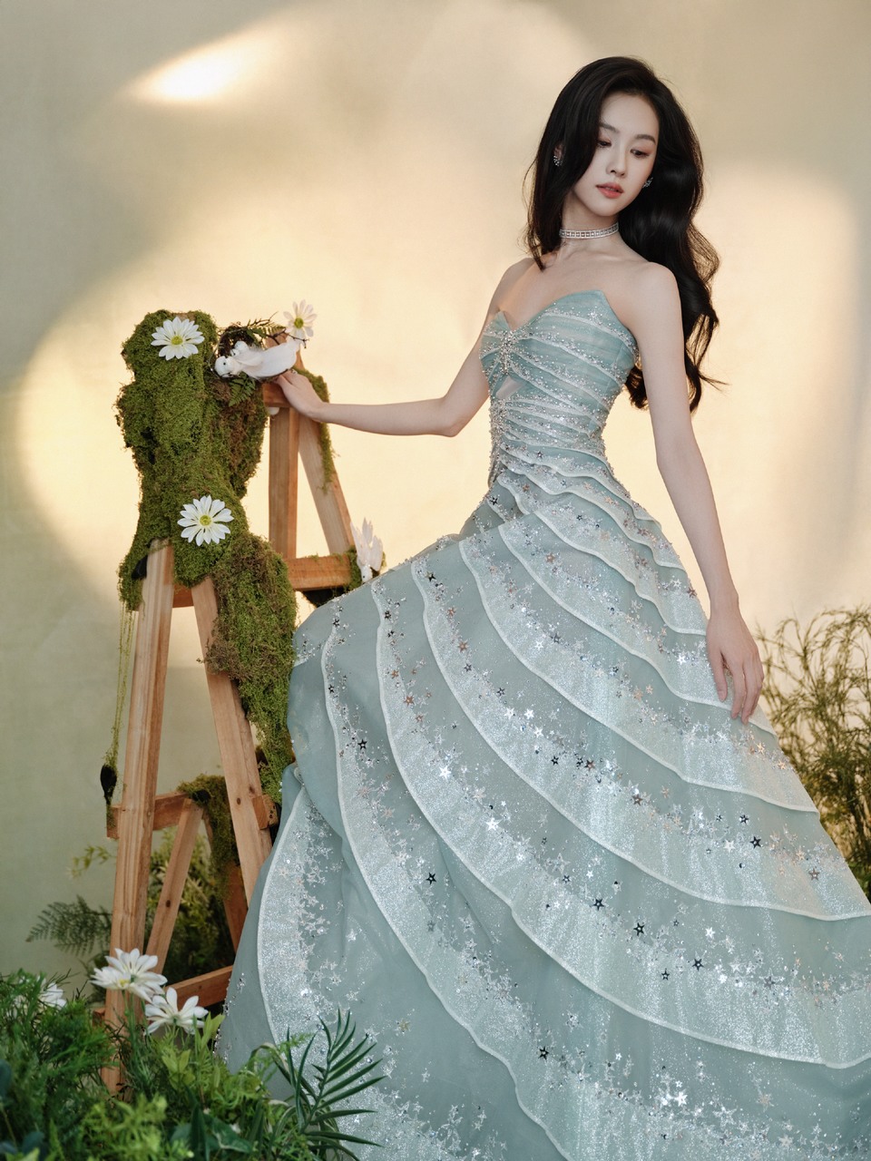 蒋梦婕玫瑰绽放在雪白裙摆